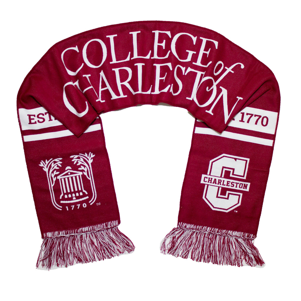 Tradition Scarves’ brand new officially licensed Charleston scarf is woven from 100% soft Turkish acrylic and features the school logo and nickname in the official school colors. Scarf measures approximately 56 inches by 8 inches wide, plus 3 inch tassels.